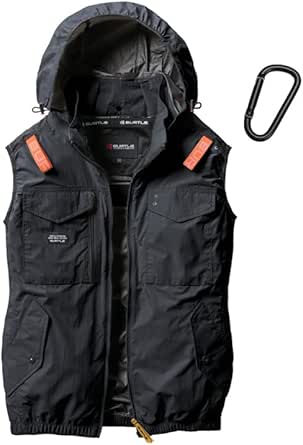 [エアークラフト] BURTLE バートル AC1154 ベスト 2025年モデル サイドファン仕様 オリジナルカラビナ付き 服のみ 遮熱効果(マイナス8度) アルミC加工 軽量 フード付き フルハーネス対応 男女ユニセックス 空調作業服 バッテリー・ファン別売り (JP, アルファベット, 2XL, 35(ブラック))