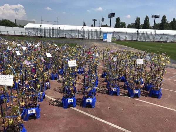 午前11時。福島の、こどもたちが五輪応援のために提供したのであろうアサガオが、スタジアムからかなり離れた場所に置かれていました。