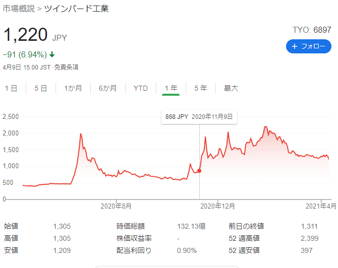 ただその記事を書いたときの株価は800円台、現在は1200円台なので確かに上昇している。