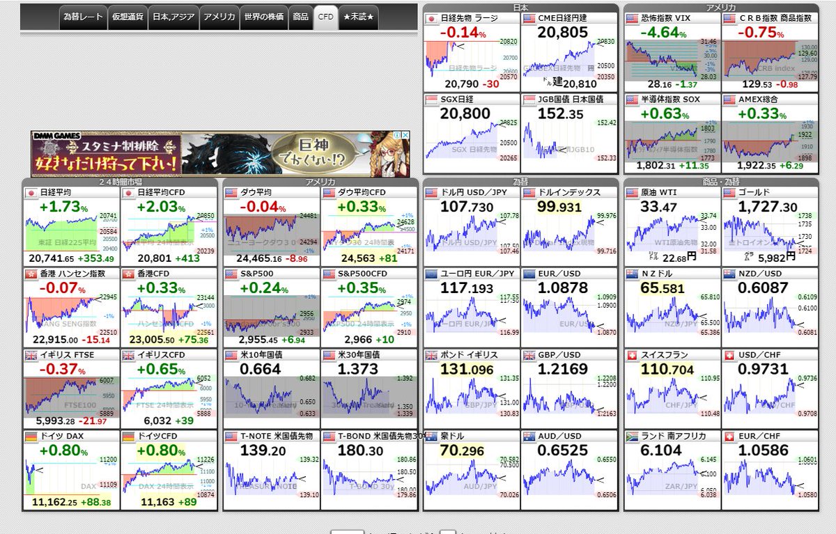【欧米株価・先物・為替・商品・仮想通貨】【2020年5月25日月夜5:05】