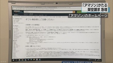 このため「アマゾン」でも、ホームページに注意文を掲載し、ショートメールで連絡したり、ギフトカードで料金を支払うよう求めたりすることはなく、決してだまされないよう呼びかけています。