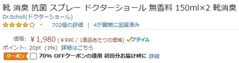AmazonにてDr.Schollの靴消臭スプレー、足用制汗スプレーに70%OFFクーポン(定期お届け便)が登場しています。外回りでよく靴を履く方には是非!やる夫も使っておりオススメです!靴用消臭・抗菌スプレー(無香料):https://amzn.to/2qROEWr靴用消臭・抗菌スプレー(ベビーパウダーの香り):https://amzn.to/34pCyBH足用制汗スプレー:https://amzn.to/2PH9PTmこちらもお知らせ、本日23時59分までのキャンペーンです: