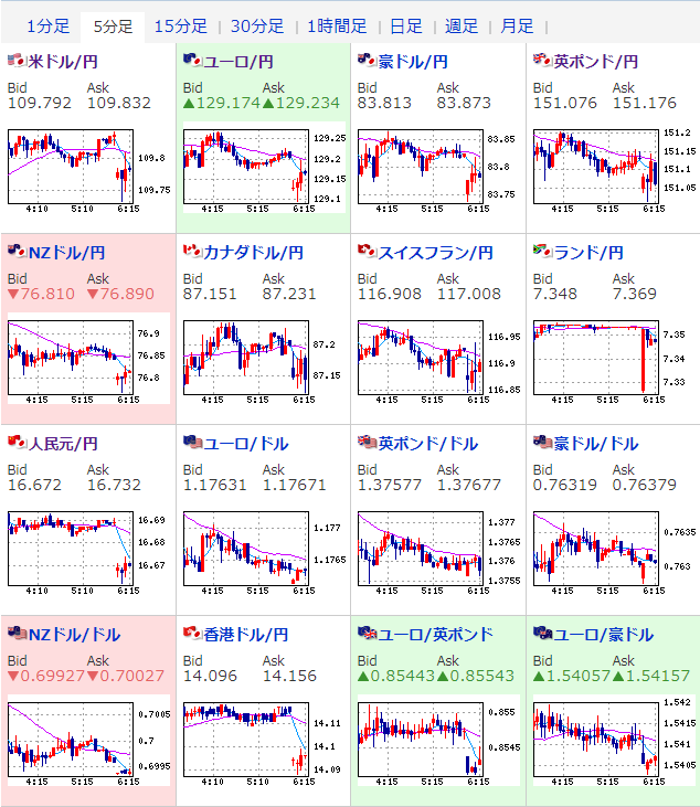 29日日本時間ではドル高傾向が一旦弱まりドル円は一時109.4円台まで下げたものの、その後回復し30日現在では1ドル109.8円に。