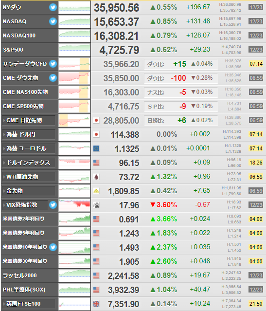 クリスマスで大味な相場+ファイザーの経口薬効果もあり、海外は経済を動かすムードかもと思っているお。(経済指標も良化続き)