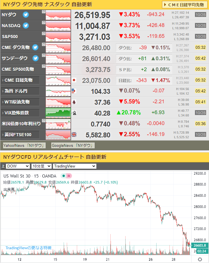 それに伴い恐怖指数は急上昇、相場の大変動が起きてもおかしくない数字(というよりもう起きているけれど)なので十分に注意をだお。