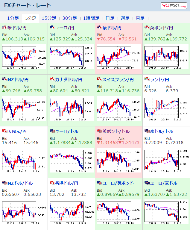 一時1ドル106.1円台まで落ちたもののその後反発、現在は106.3円台まで。