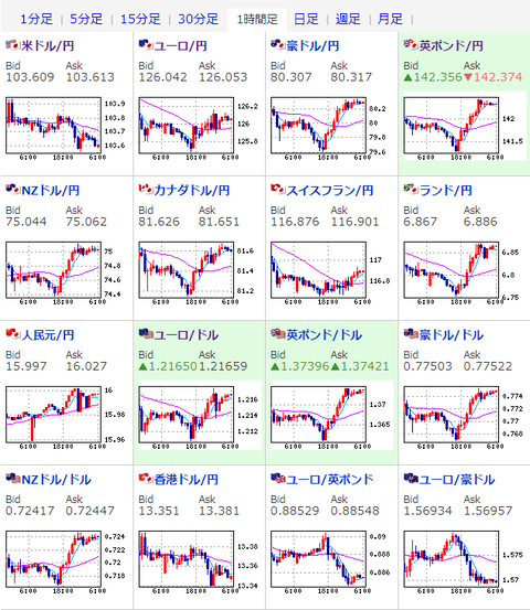 →基本的にドル安かと思われるが円もドル似たような動きをするためドル円が扱いにくい相場