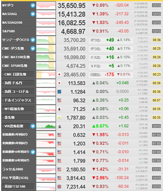 オミクロン株の懸念再燃かという報道が見られるけれど、ベイリーBOE総裁も述べているようにオミクロン株が市場の大きなストレスになっているとはあまり思えずかお。
