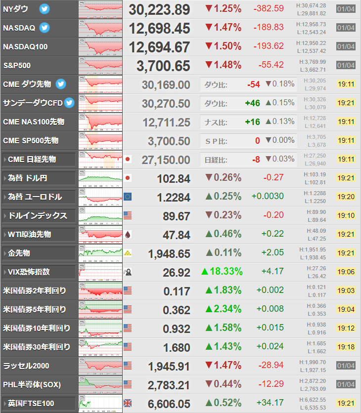 ダウ先はそこまで動いていないけれど、昨日もこういった動きだったので警戒中。