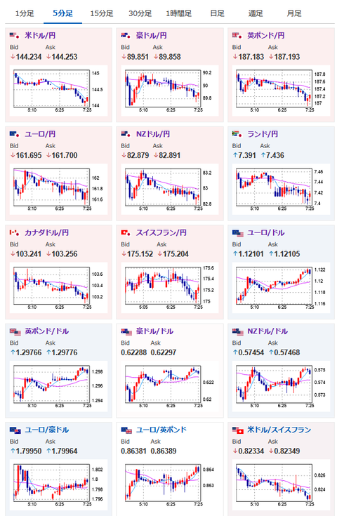 朝の参加者が少ないあたりで円高方向の攻めがあり一時143円台にタッチ。