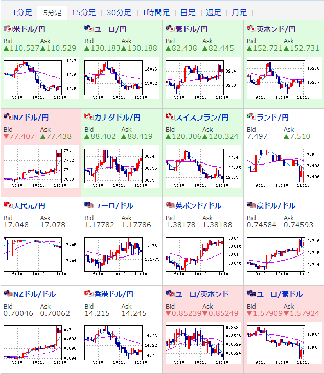現在は1ドル110.5円付近で円高に下がったところをロングで狙っていきたいと思っているお。