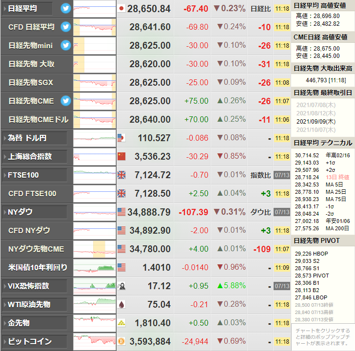 日経平均は米国株下落の連れ安っぽい動きで本日は下落しているお。