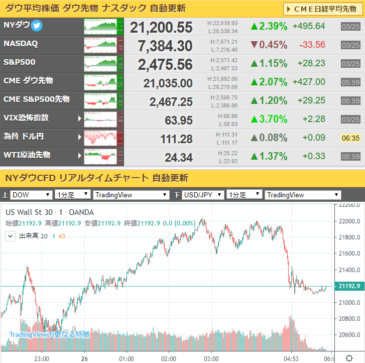 昨日もダウは大幅な上げ。
