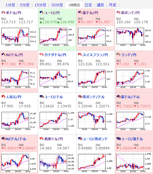ただ1ドル114円の壁がまだ厚いようで一旦押し戻され現在は113.7円付近での推移だお。