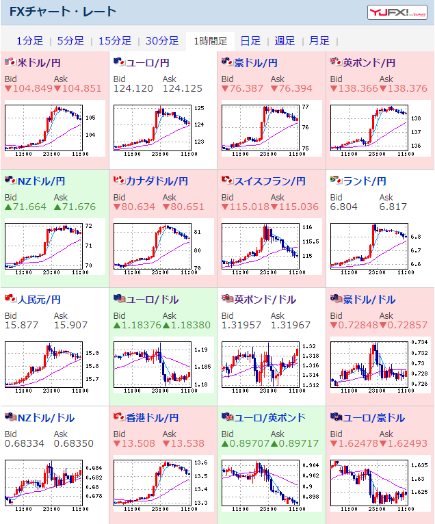 昨日一気に上げたドル円・クロス円だけれど、天井からはずっと右肩下がりで円高方向だお。