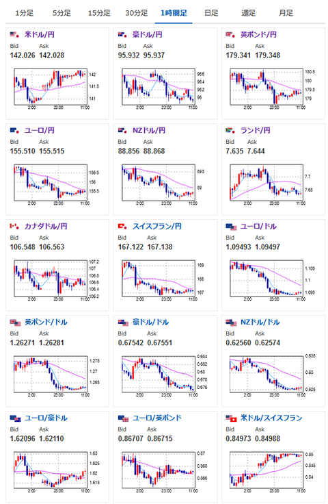 その後米経済指標の悪化により141円台半ばまで戻していたけれど、引け時には戻して再び142円台に。