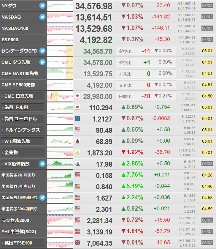 ただし株価指数に関してはテーパリングやインフレ懸念が根強くあり、ダウは一時プラテンをするものの引け時にはマイナス圏となったお。