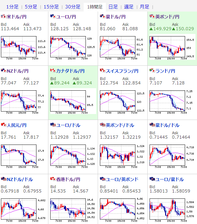 現在は緩やかに円高株安的なレンジの動きだお。