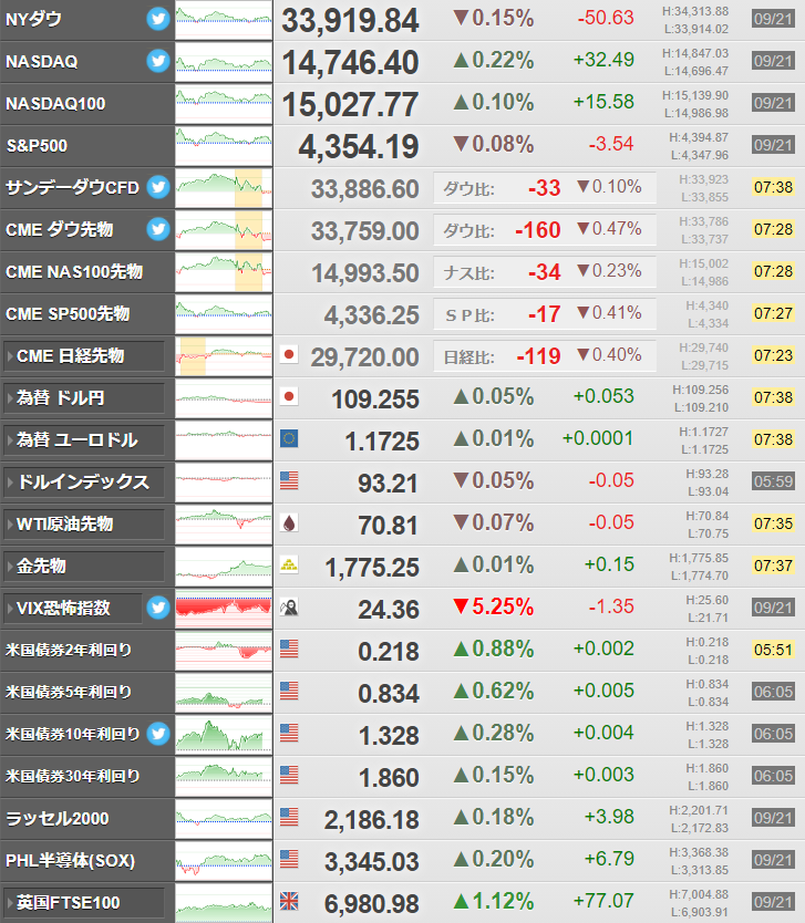 米国市場は21日もリスクオフ気味な動きが続いているお。