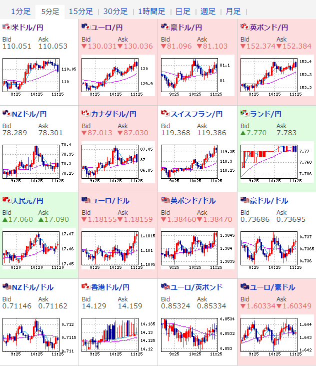 朝の為替相場記事に書いた通り、全体的に円安傾向の動きだお。