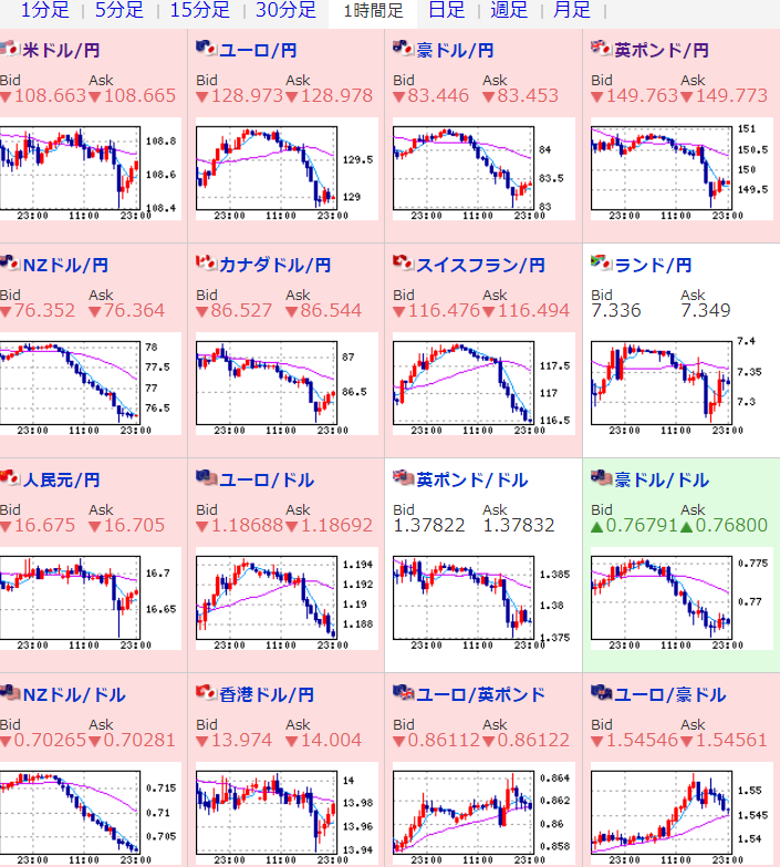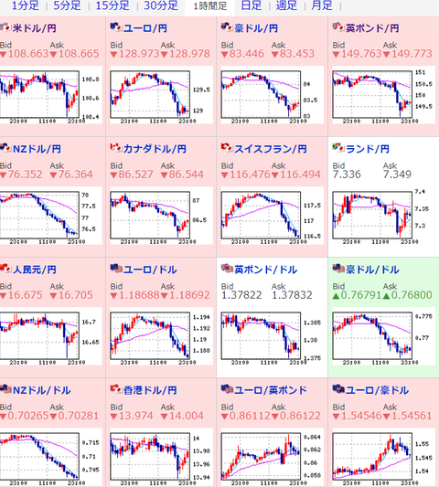 レンジで一旦持ち直すかなと思っていたけれど、ユーロ円、豪ドル円、ポンド円なども円高方向。