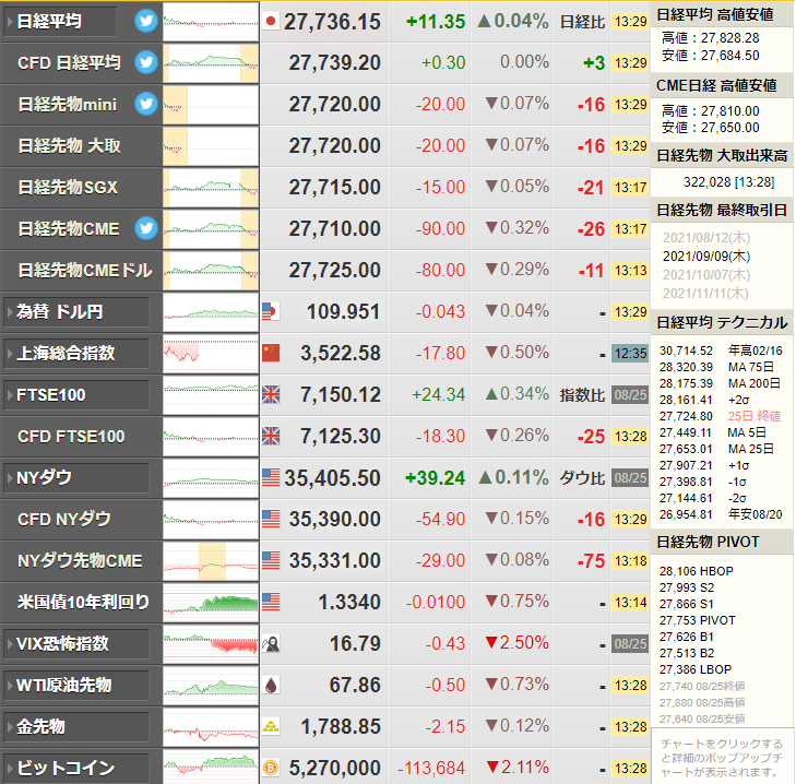 日経平均も本日は上昇しているお。