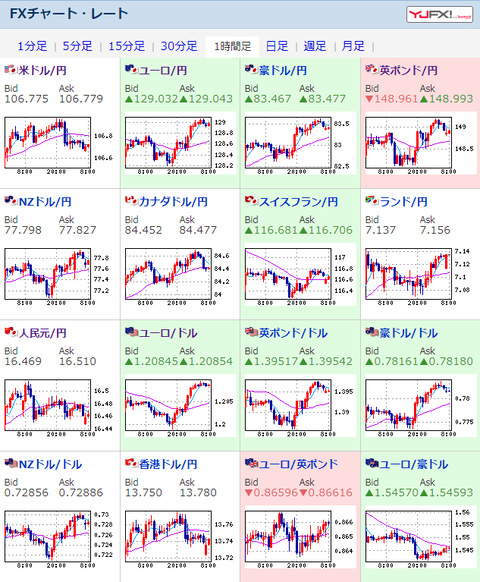 為替相場は全体的に円安傾向、ポンドはマイナス金利不安が少し和らいだ印象だお。