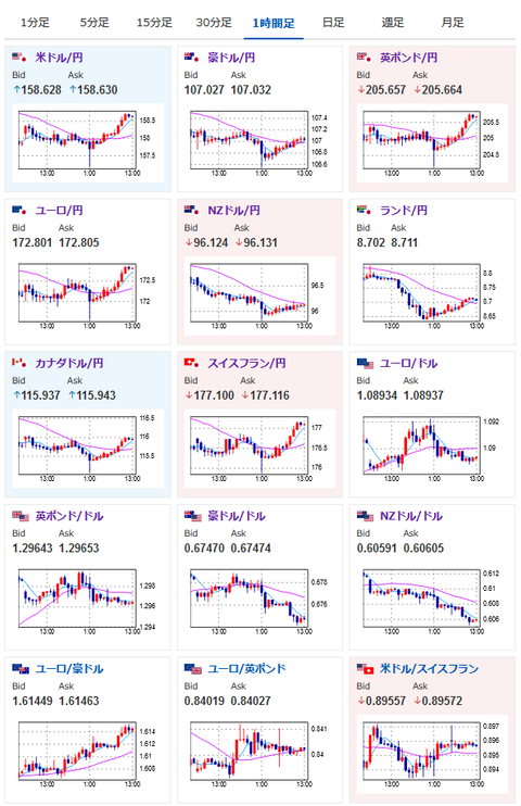 ドル円は円安、他の通貨ペアではドル高といった動き。