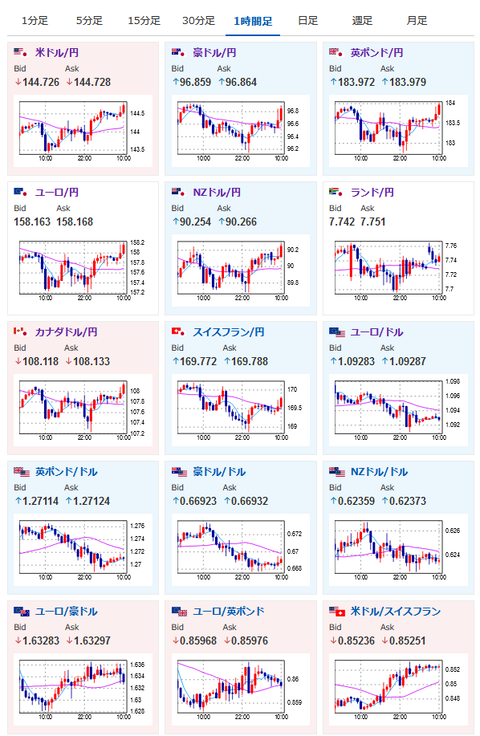 利上げ期待が後退したことにより円売りが入り現在145円台手間。