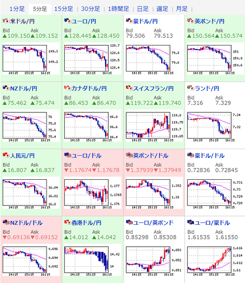 またドル円だけでなくクロス円もかなり大きく円高気味だお。