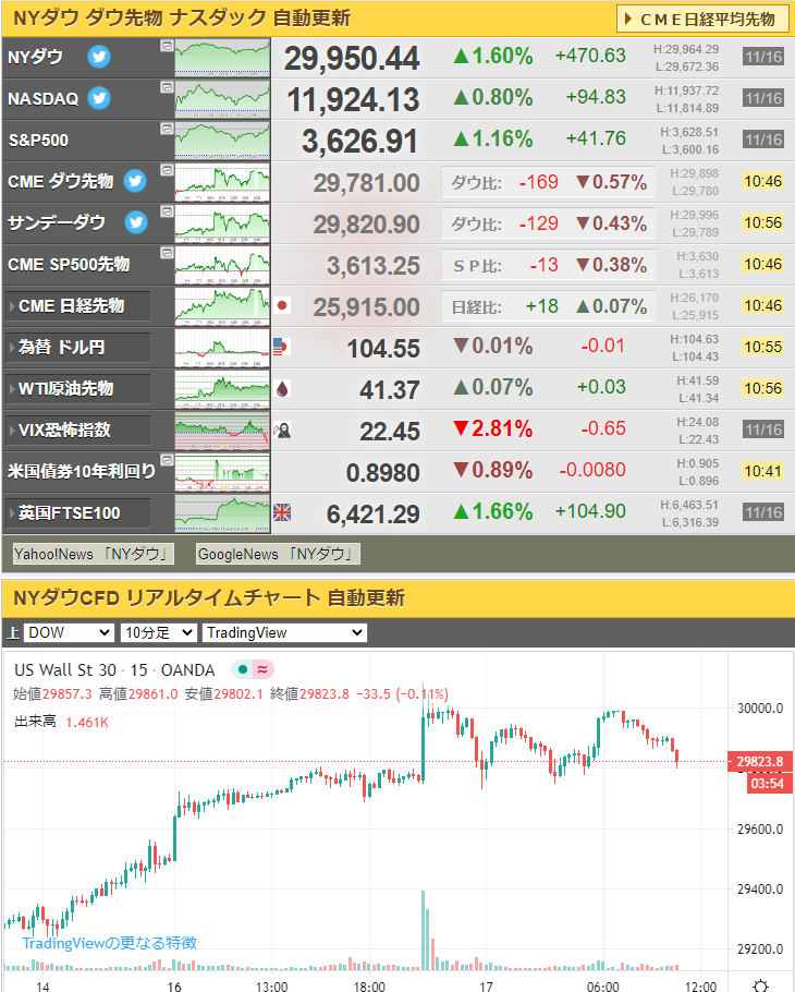 先ほどの日経平均記事でも書いた通り、ダウは昨日+470ドル超で強い数字。