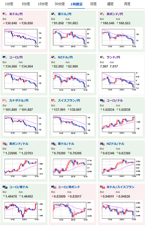 現在1ドル130.5円付近まで落ちた後、バウンドして130.8円台といったところだお。