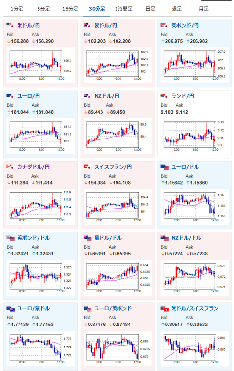 ・先日はNY市場が休場のため、あまり目立った動きなし