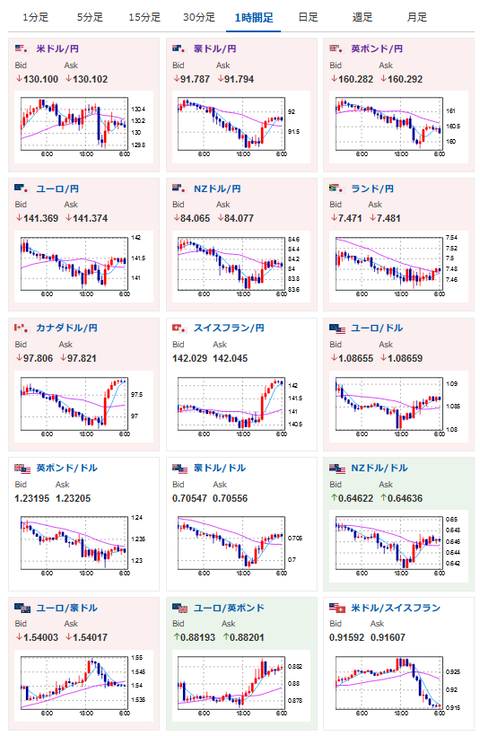 ただその後は本日のイベントラッシュの懸念もあるためか調整っぽい動きが続き現在は1ドル130円付近での推移だお。