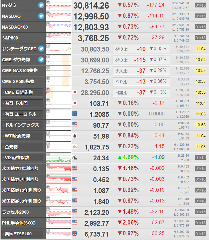 市場は先週金曜日のバイデン次期大統領の経済対策発表から利確の動きが続いているようだお。