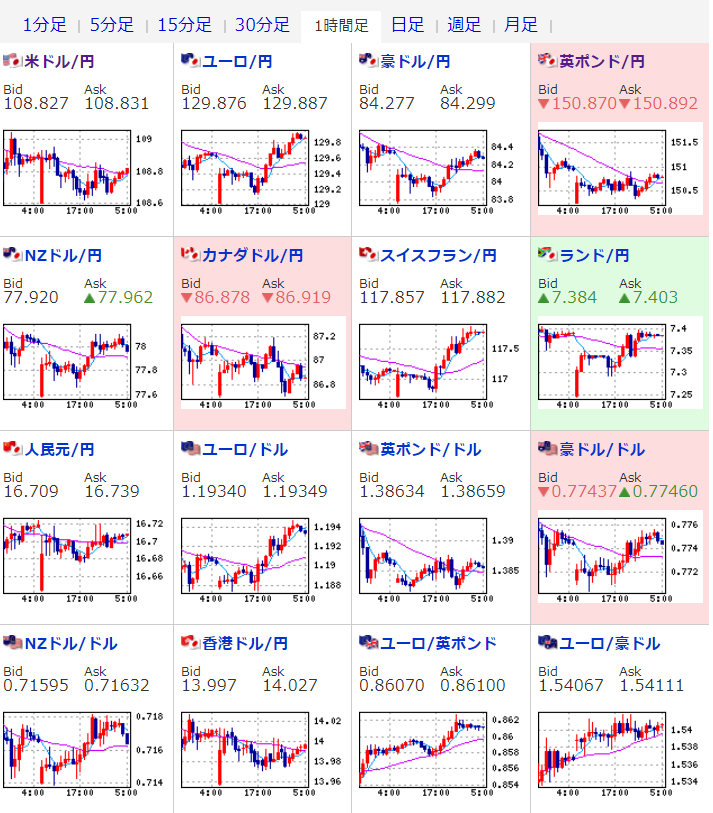 ドル円は一時108.6円を割りかけたものの再び108.8円台。