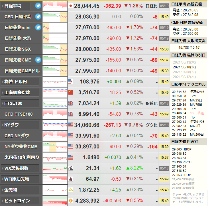 先日は米国株価指数も下げているお。