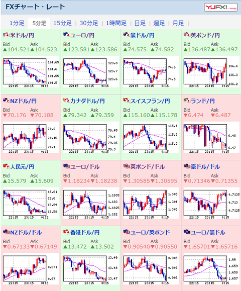ドル円はどこかで跳ね返るかな~と思いつつもなかなか跳ね返らず、現在は104.5円付近。