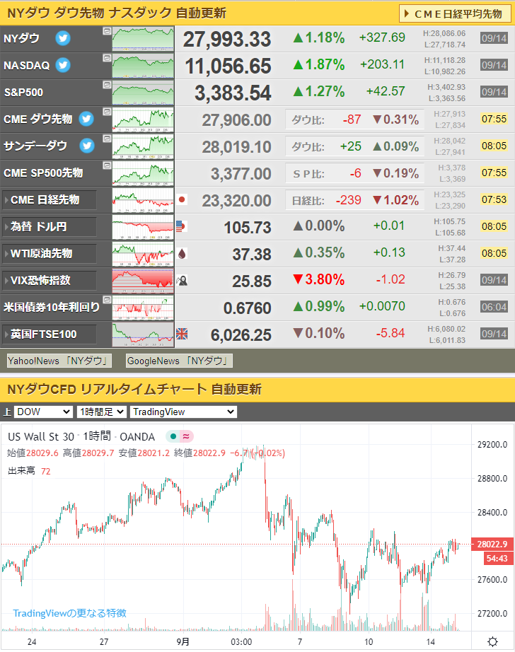 米国株価指数はワクチン報道やTikTok売却などの報道もあり反発と報道されているお。