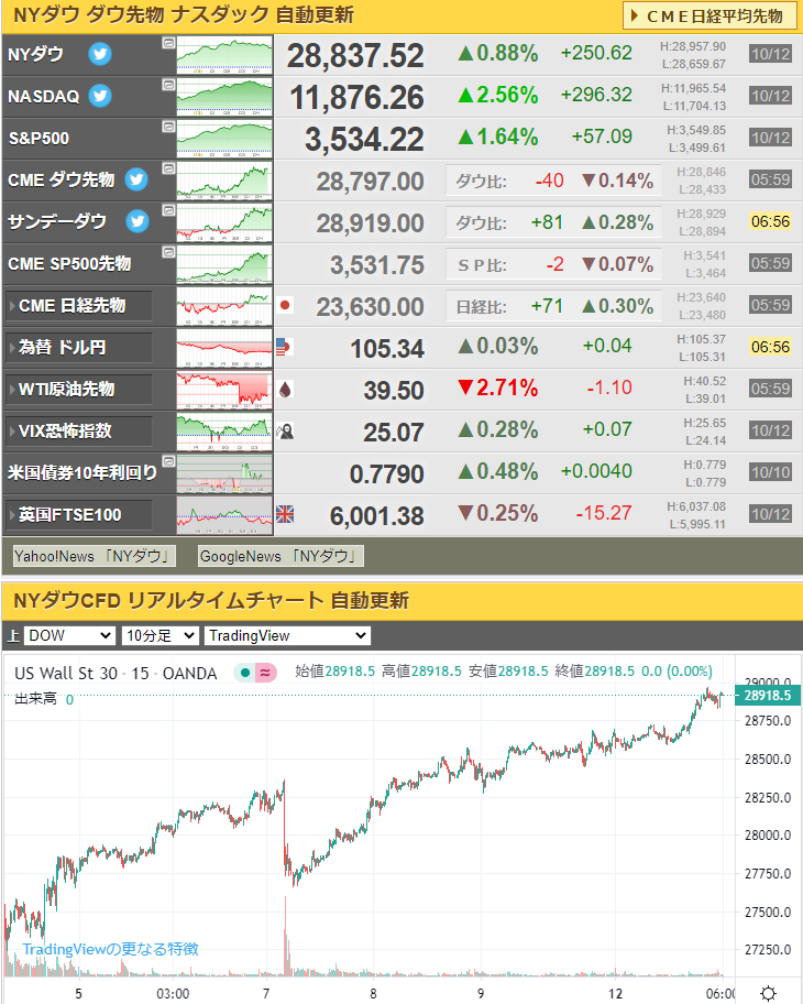 今日ダウは29000ドル超えチャレンジが可能かお?