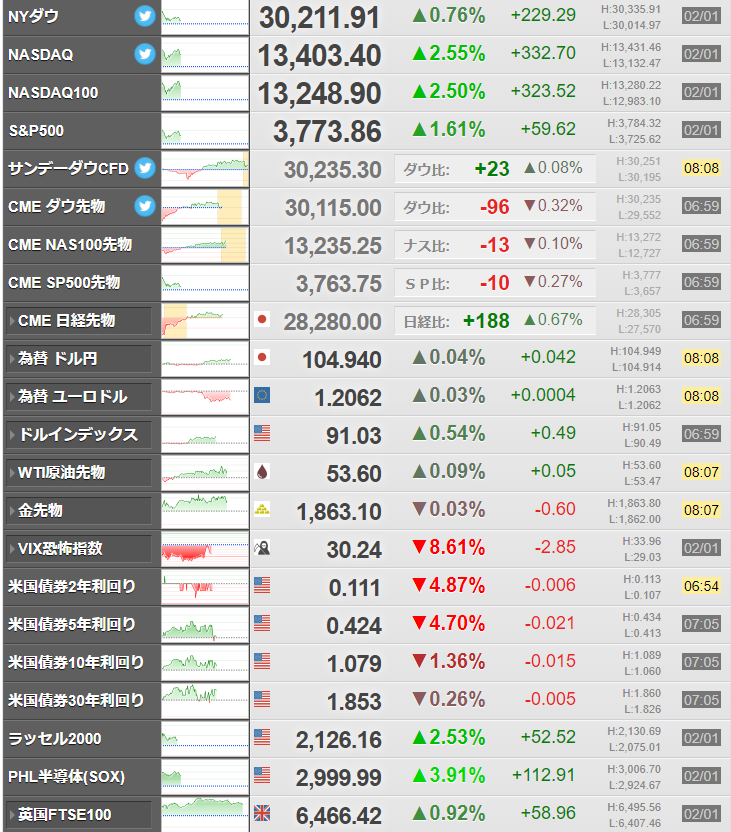 特に米国時間ではS&P500の伸びが凄まじかったお。