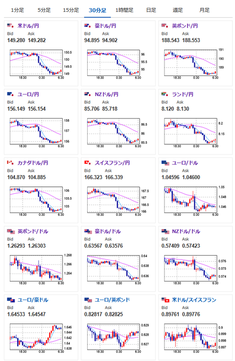 米経済指標が週を通してかなり悪くFRBの利下げ期待が急増だお。