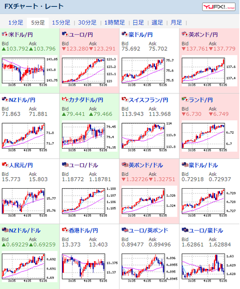 クロス円は上昇しているお。