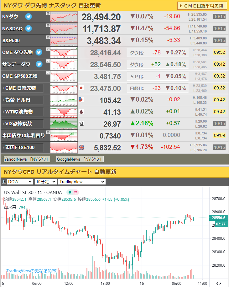 米追加経済対策に期待感との報道もあったけれど、特に新たな材料は無く不透明な状況だったお。