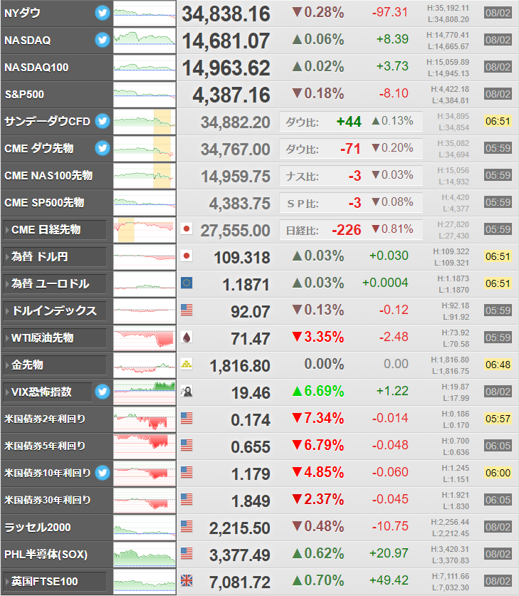 2日、米国市場オープン時にはプラス圏だったダウもクローズ時にはマイテン。