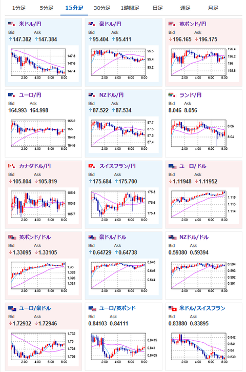 ドル円は一時148円台前半を付ける場面もあり、現在の値動きは米債利回り低下によるボラの範囲か、数日前に大幅に円安に動いた部分の調整かなと思っているお。