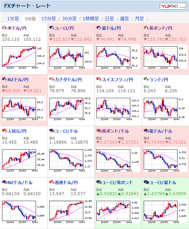 ただ105.2円付近から非常に上値が重いところもあり、今後さらに円安が進むかどうかは微妙だお。
