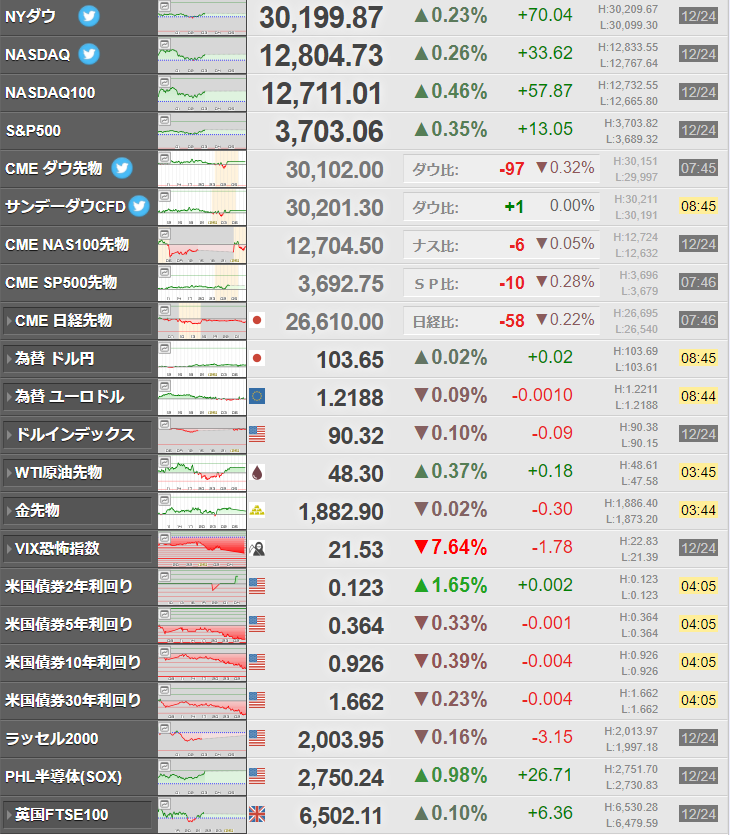 本日はどの市場もほぼクリスマス休暇。