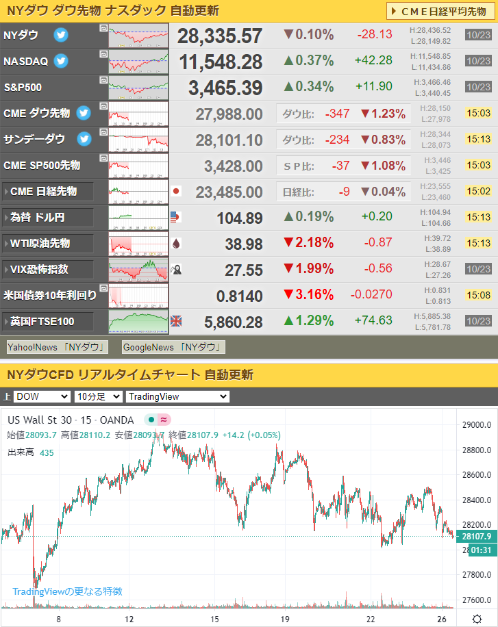 米追加経済対策の選挙前合意はほぼ絶望的との見方が広がっており、あまり米株を押し上げる材料がないのが現状だお。