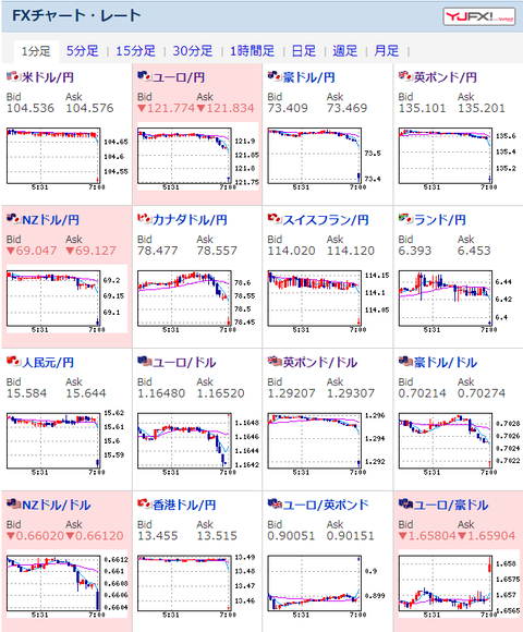 特にロックダウンを発表したポンド円の下落幅が大きいお。